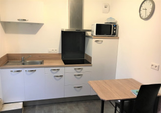 Le logement est entièrement meublé et prêt à vivre : télévision, canapé, table et chaises, lit, rangements, aspirateur, machine à laver ...