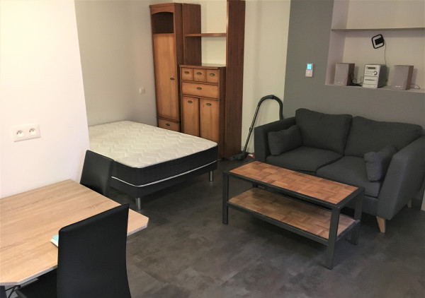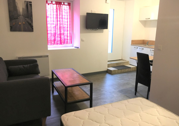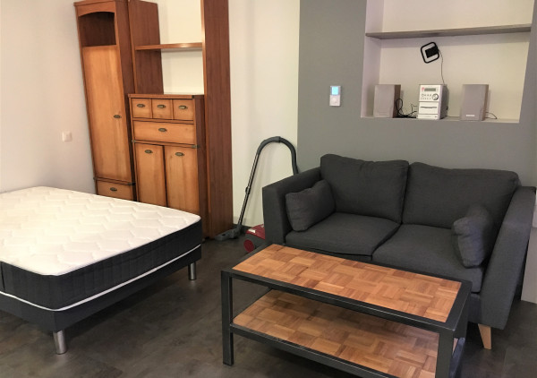 Le logement est entièrement meublé et prêt à vivre : télévision, canapé, table et chaises, lit, rangements, aspirateur, machine à laver ...